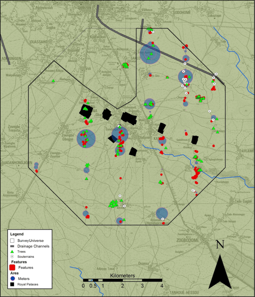 Documentary sources indicate that during the eighteenth and nineteenth centuries, the Abomey Plateau was characterized by a multi-centric urban pattern centered on two neighboring cities: Abomey and Cana. Abomey in this period was an expansive community surrounded by a rectilinear wall and ditch system, an anomaly in the urban ditches of West Africa. Nearby Cana, located 11 kilometers to the southeast, also emerged as a major economic center on the plateau during this same period. Cana originated as a Guedevi settlement prior to the arrival of the Fon on the plateau. Cana also boasted regional markets, served as a major node in regional administration and inter-regional trade routes, and its population in the eighteenth century may have reached as many as 15,000 inhabitants. Despite evidence for population decline by the late nineteenth century, Cana continued to support a substantial population numbering anywhere from 5,000 to 25,000 inhabitants. Although a good deal can be learned from the historical record about the city itself, the same is not yet true of the broader settlement system into which it was articulated. The Cana Archaeological Survey was designed to fill this gap, exploring the broader history of settlement andn urbanism at Cana, and it relationship to villages across its rural countryside.