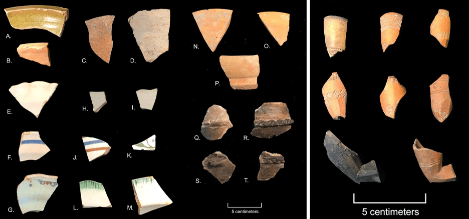 Below this domestic midden, we identified a layer of sterile sand, capping a second midden, containing iron fragments, cattle bones, and indigenous meillacoide pottery of the ninth to the sixteenth centuries. This denotes the presence an indigenous settlement with a terminal phase of occupation dating to the contact period. Thus, excavations in Area A2 revealed three phases of construction and occupation prior to the construction of the Royal Era complex during Christophe’s reign. Two of these post-dated the Revolution, and one dated to the period of fist contact with the Spanish.