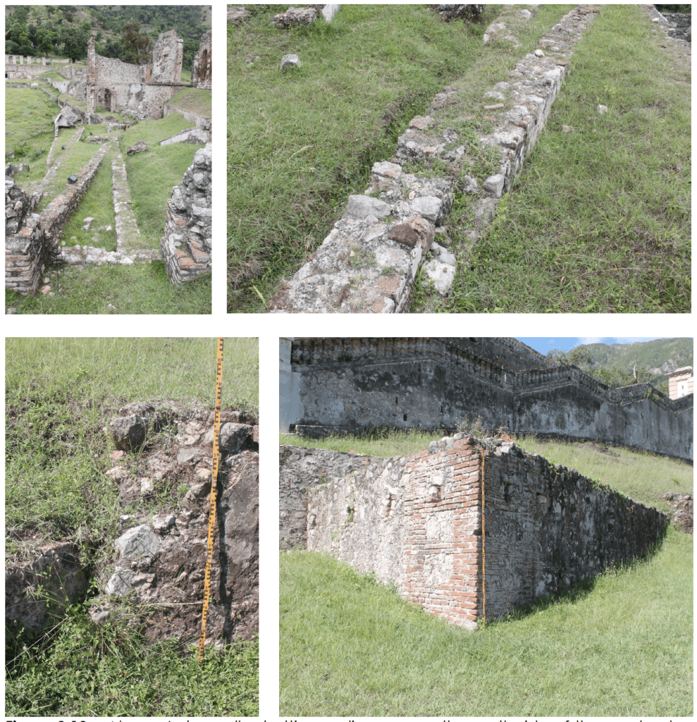 In the early 1980s the ISPAN (l’Institut Sauvegarde du Patromoine National) and UNESCO conducted an exhaustive architectural survey at Sans-Souci in preparation for its inscription as a UNESCO World Heritage Site. Preliminary archaeological testing by ISPAN in the 1980s targeted the cour caimitier, a long platform that extends east-west across the palace landscape, the royal gardens, and the palais des ministers, a long multi-room structure aligned along the southern edge of the cour caimiter. This survey and excavation campaign revealed a number of walls projecting outwards from below the royal foundations as well, suggesting a significant level of construction took place prior to the royal era.